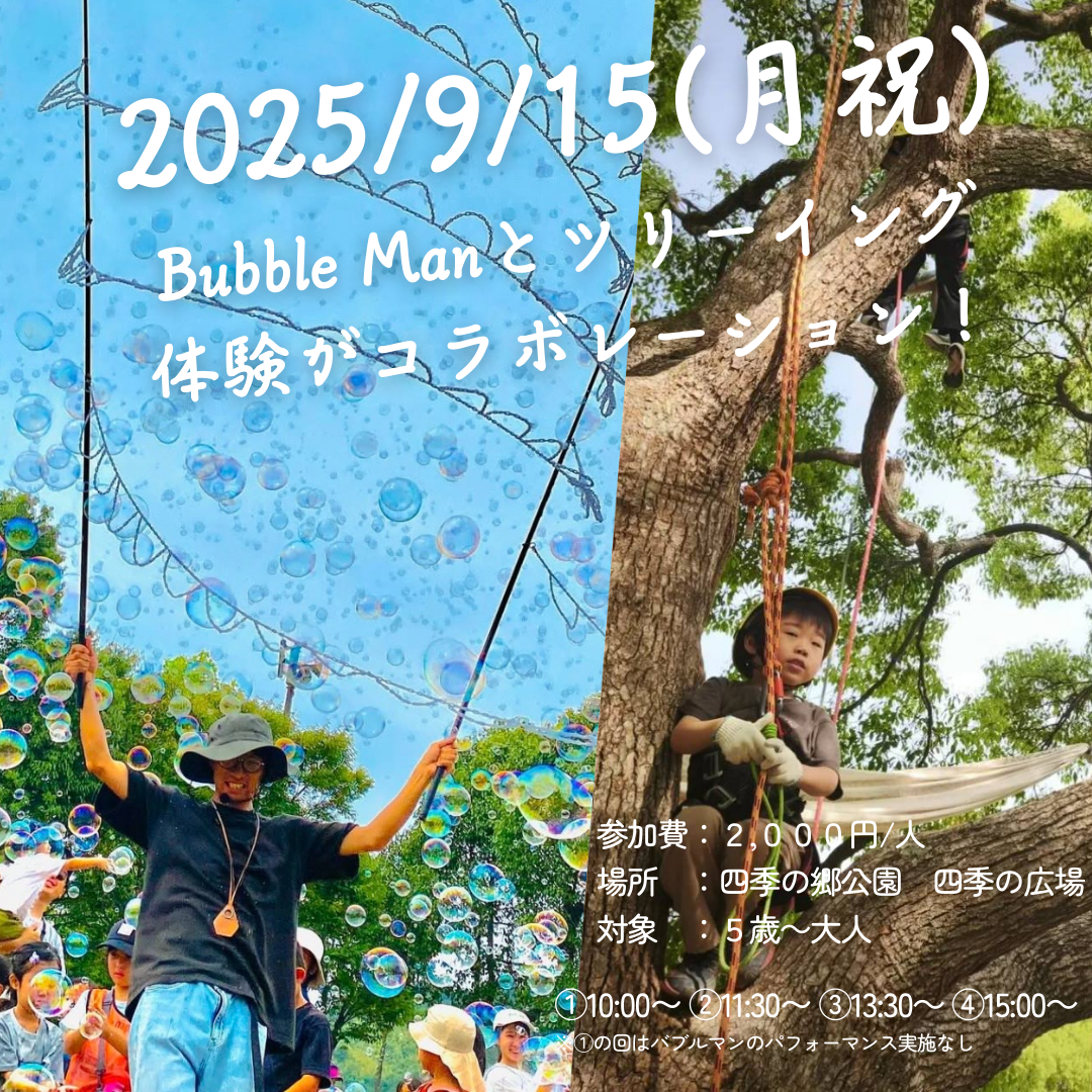 【2025年9月15日(月祝)開催】BubbleMan×ツリーイング体験 in 四季の郷