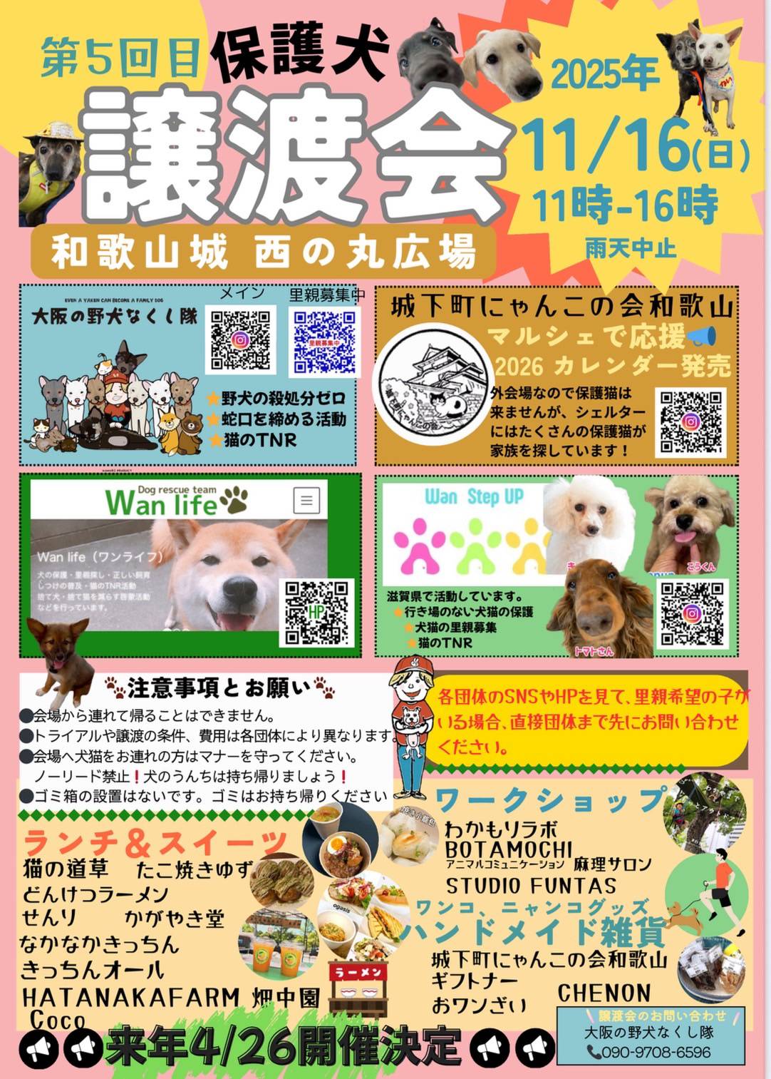【2025年11月16日(日)】和歌山城ツリーイング体験(保護犬 譲渡会)